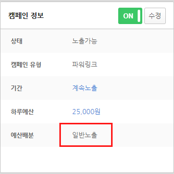 꼭 예산배분을 일반노출로 세팅 부탁드립니다.