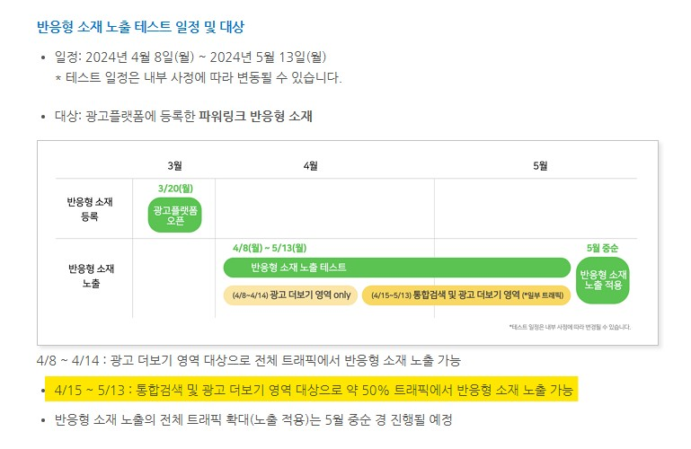 네이버광고상 반응형소재 안정화가 될때까지 (5월중순)는 단일형 소재로 광고를 부탁드립니다.