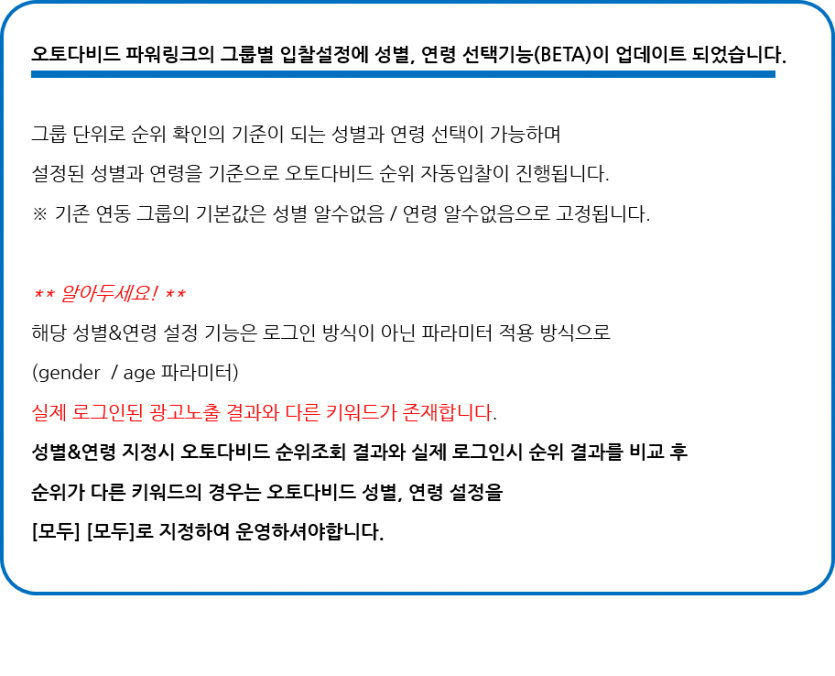 공지 파워링크 성별, 연령 기준 순위입찰 기능 업데이트(BETA)
