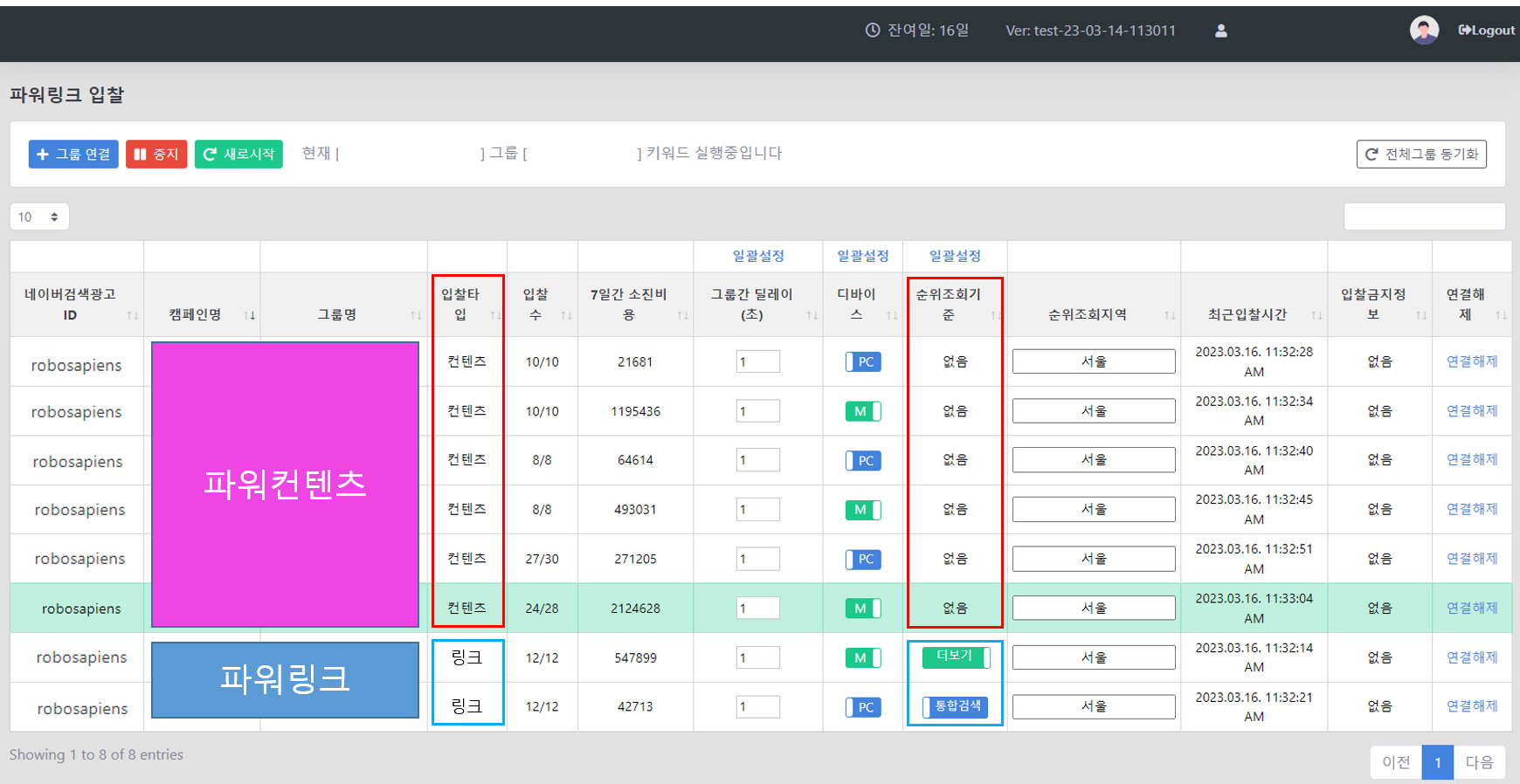 - 그룹별 입찰조건 [파워링크]