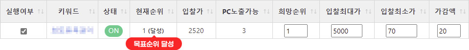 해당 키워드의 타겟 순위를 설정할 수 있습니다 |