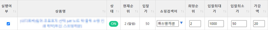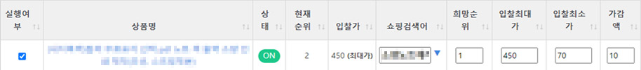 상품에 대한 자동입찰 실행여부를 선택할 수 있습니다. |