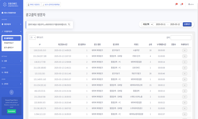 부정클릭방지 의심유입 집단 차단! 오토다비드