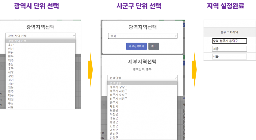 광역단위 설정 순위조회 시군구