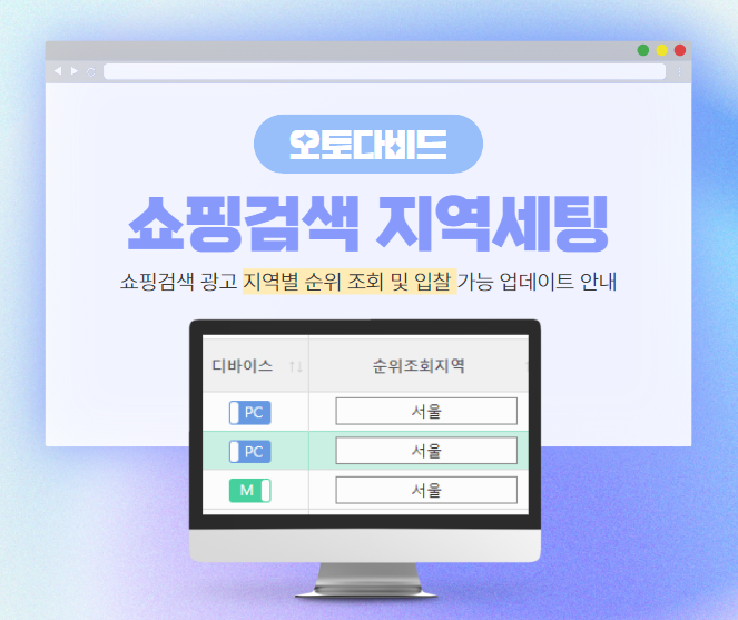 업데이트 [오토다비드] 쇼핑검색 영역 순위조회지역 설정 업데이트 안내