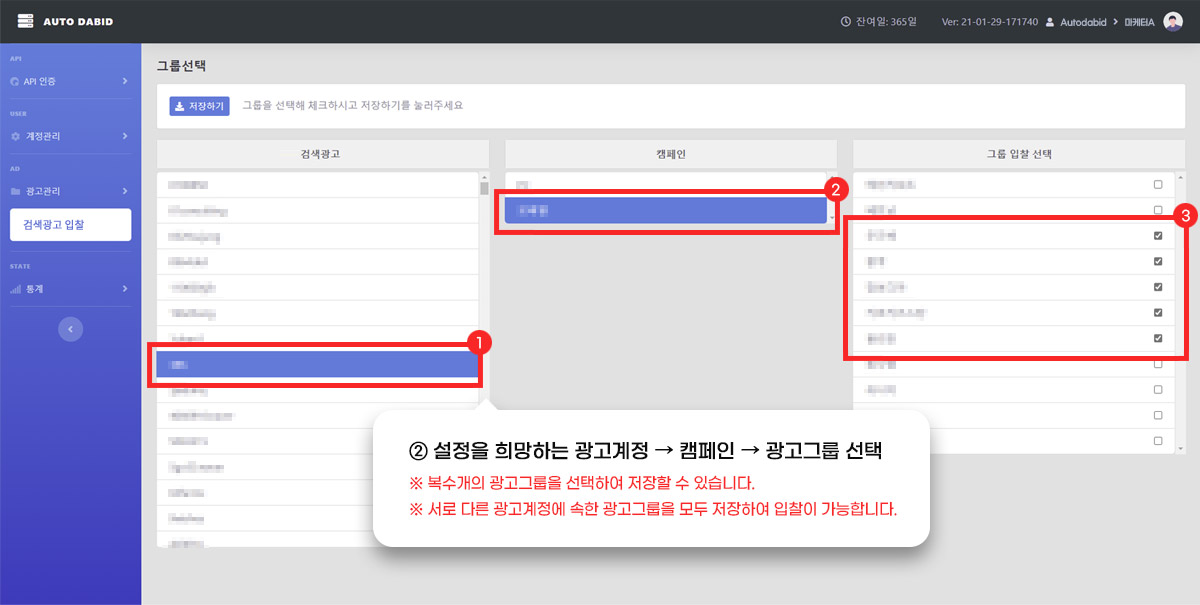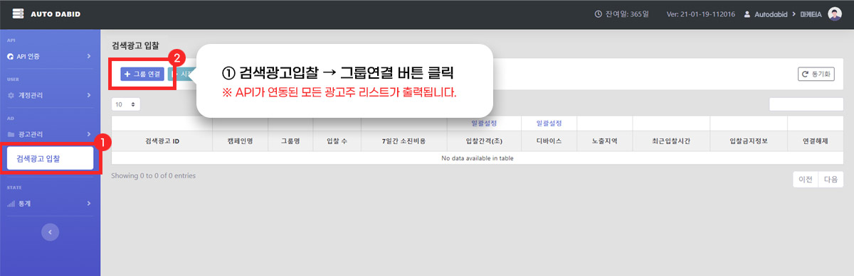 - 그룹연결 : 자동입찰을 희망하는 그룹을 추가로 연결/해제 가능합니다 |