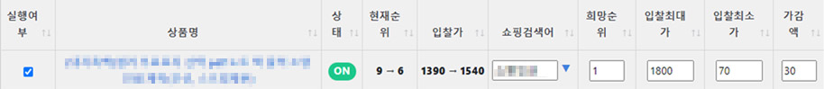 상품에 대한 자동입찰 실행여부를 선택할 수 있습니다. |